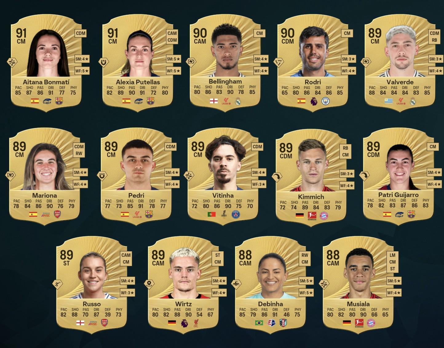 《FC26》中的中场球员前14已经遭到曝光,其中,贝林厄姆和罗德里并列男足第一,维尔茨、巴尔韦德在列。